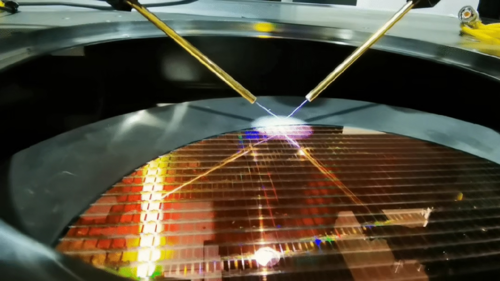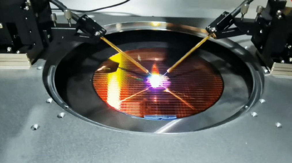 第二步:探针对位。通过显微镜系统辅助观察,操作人员手动或半自动调整探针臂位置,使钨/铍铜等材质的探针,与样品电极或测试点实现精确接触。