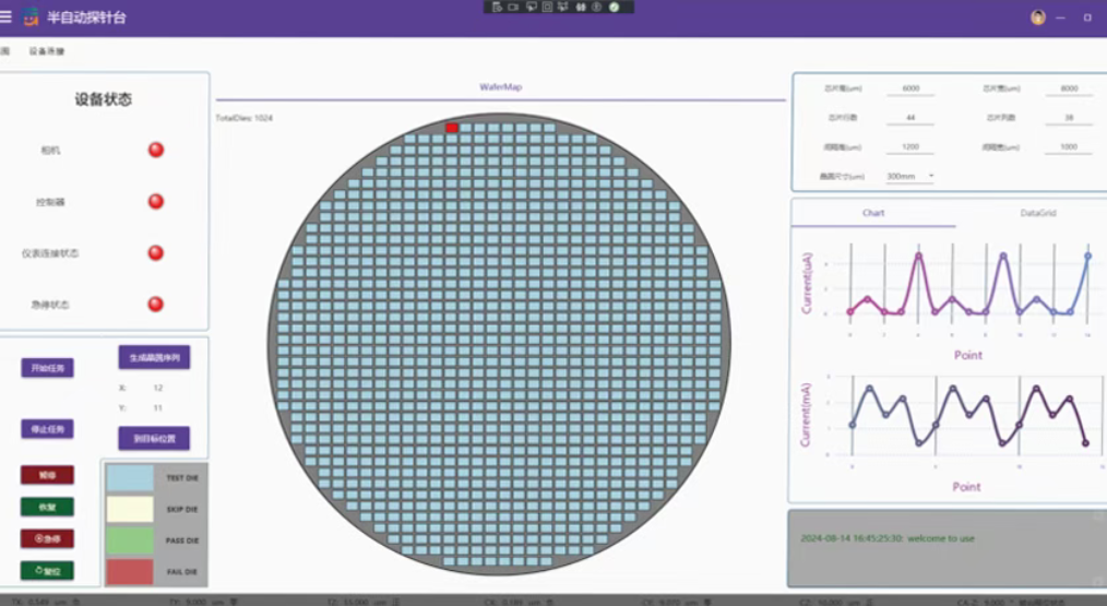提供清晰直观的触屏操作页面,手触点击即可完成对晶片的自动对位测试,极大提升了测试的智能化水平与数据分析效率。与测试仪无缝连接,自动完成晶体管电参数测试及功能测试,减少人工干预。