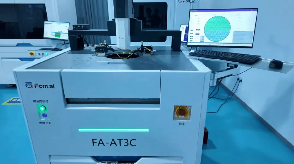 这一过程中,“精准定位”与“安全接触”是保障测试效果的核心。以形识智能的半自动探针台为例,支持全尺寸晶圆极速测试,可实现≤15秒自动对位与高精度电参数/功能测试;集成智能触控、动态MAP显示及五段式Z轴防护,无论是研发阶段的参数精准验证,还是量产环节的品质严格把控,都如同 “显微手术刀” 般精准高效,完美适配高难度测试场景的需求。